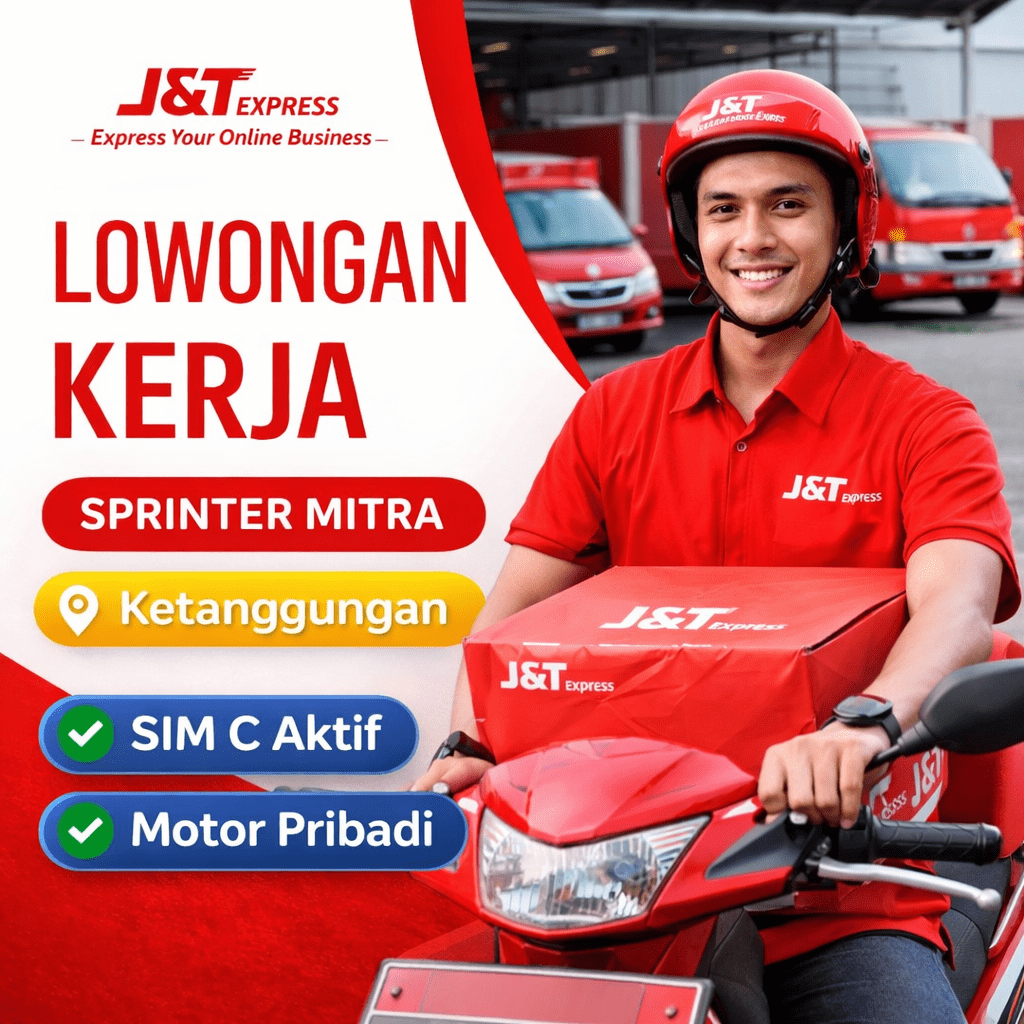 Lowongan Kerja J&T Express Ketanggungan 2026 – Sprinter Mitra (Kurir Delivery) J&T Express membuka kesempatan kerja untuk posisi: 💼 Sprinter Mitra (Kurir Delivery) Posisi ini bertugas untuk mengantarkan paket kepada pelanggan sesuai area penempatan. 📍 Lokasi Penempatan 📌 Kecamatan Ketanggungan ✅ Kualifikasi Pria / Wanita Pendidikan minimal SMA/sederajat Usia maksimal 35 tahun Memiliki SIM C…